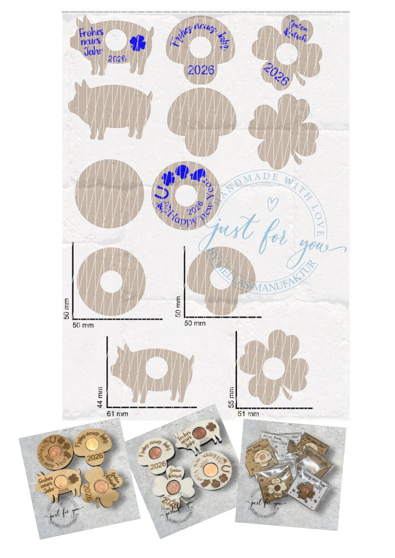 Perfekt für alle, die einen Laser-Cutter besitzen und liebevolle Glücksbringer aus Holz, MDF oder Sperrholzfertigen möchten – ideal als Tischdeko, Mitbringsel oder Geschenk zum Jahreswechsel.